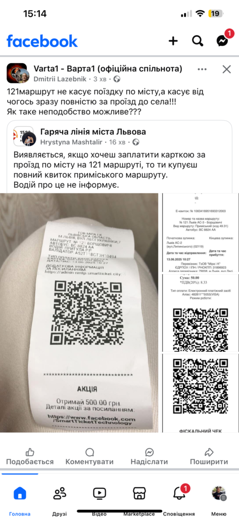 «Виявляється, якщо хочеш заплатити карткою за проїзд по місту на 121 маршруті, то ти купуєш повний квиток приміського маршруту.