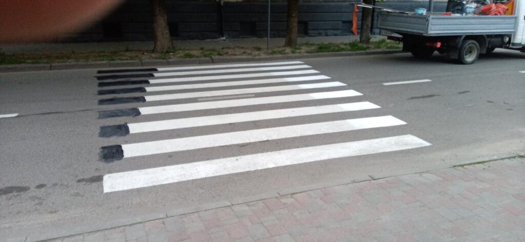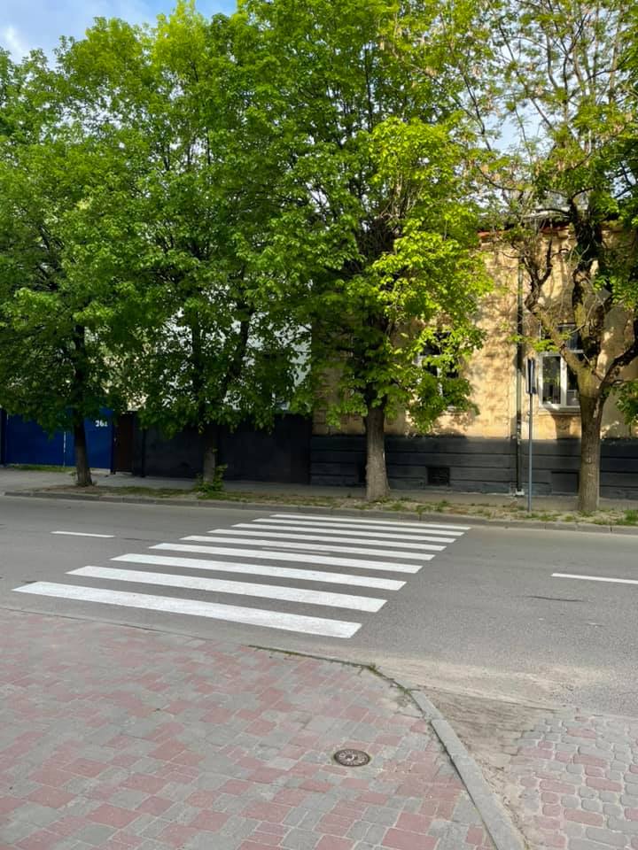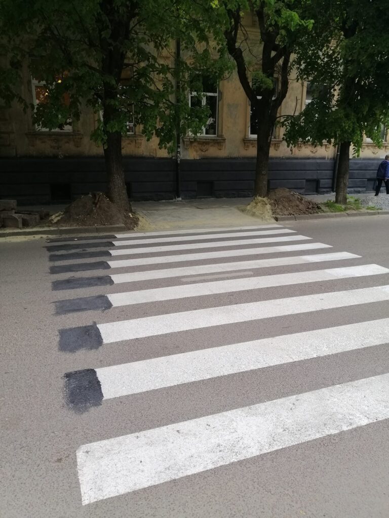 Шевченківська РА двічі виконувала роботу, оскільки спочатку лише замалювали частину пішохідного чорною фарбою, а лише з другого звернення, доробили тротуар.