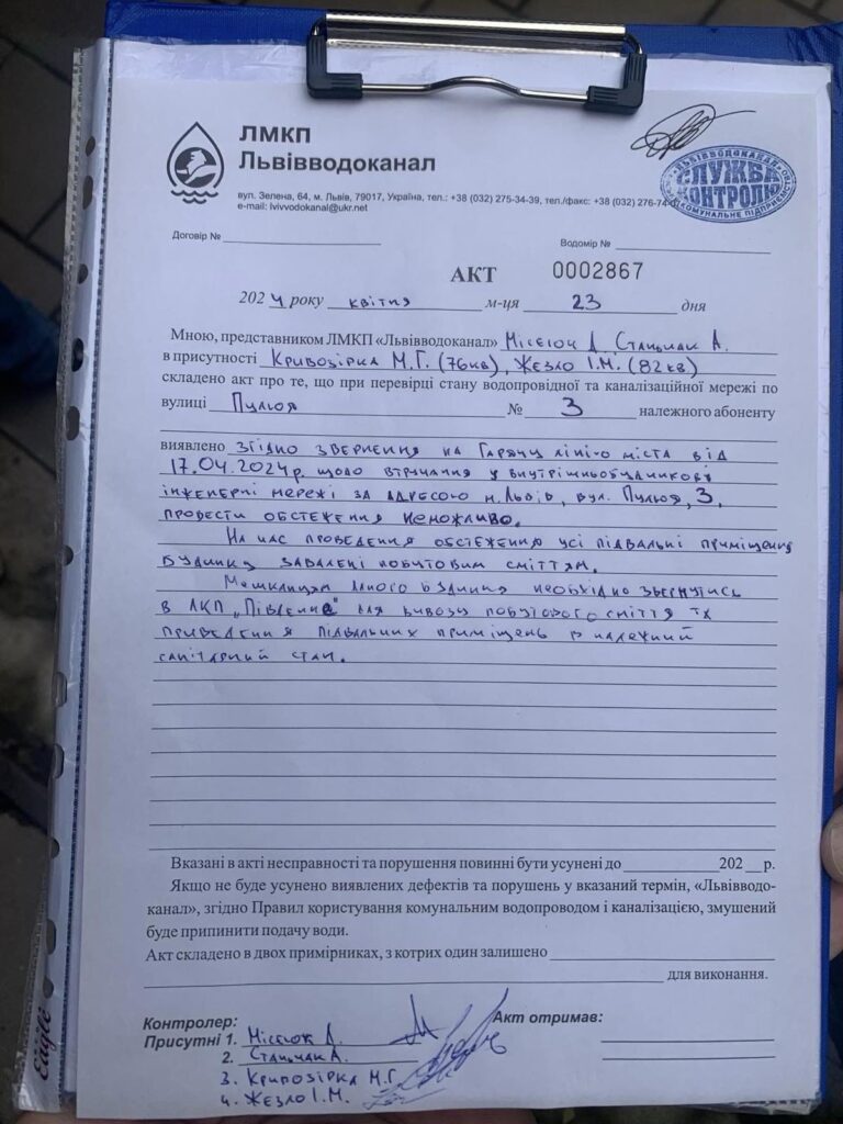 “Мешканці Пулюя, 3, 3-ій під’їзд просять привести в порядок підвальні приміщення (з дотриманням санітарних, пожежних норм), які захаращуються одним з сусідів. Сьогодні силами мешканців відбулось його затримання та передача правоохоронним органам”, – йдеться у повідомленні.
