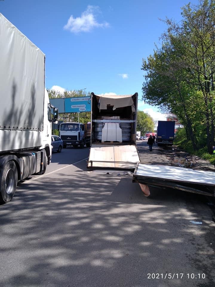 Як йдеться у повідомленні, у Малехові біля заправки WOG, за словами водія, білборд упав і розніс пів фури.