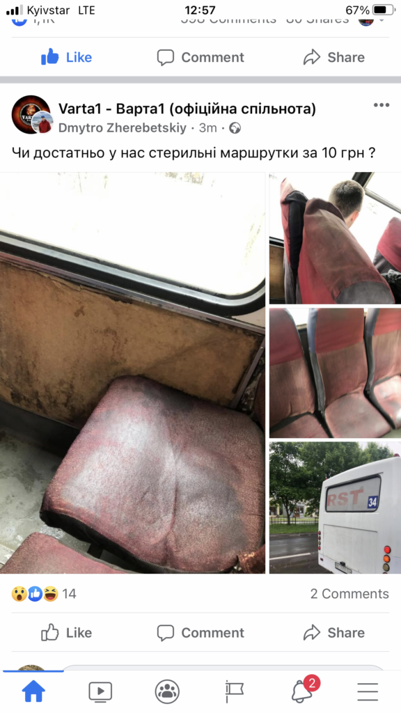 «Чи достатньо у нас стерильні маршрутки за 10 грн?», – йдеться у повідомленні.