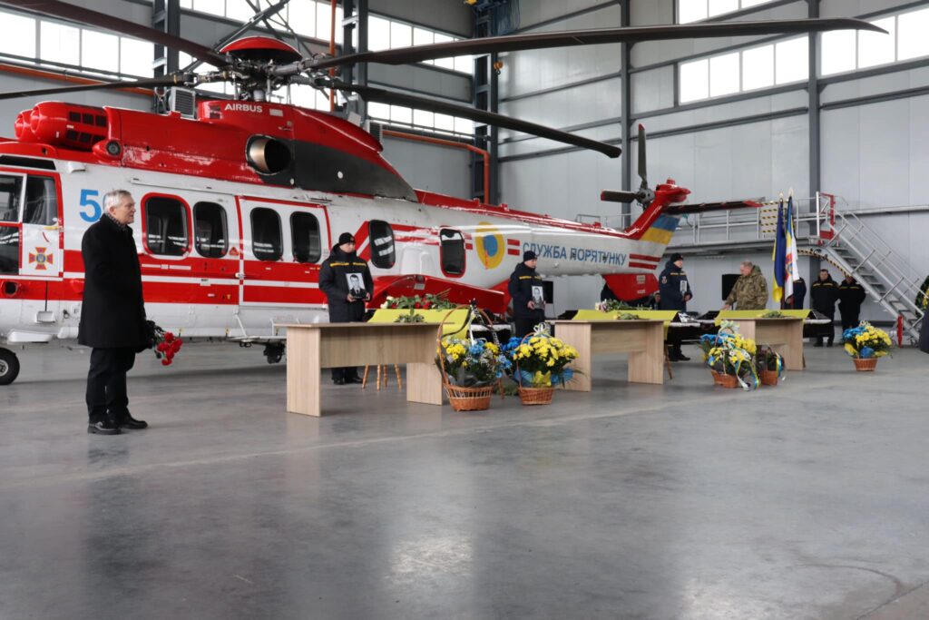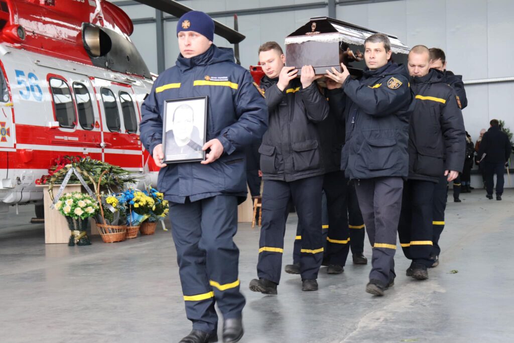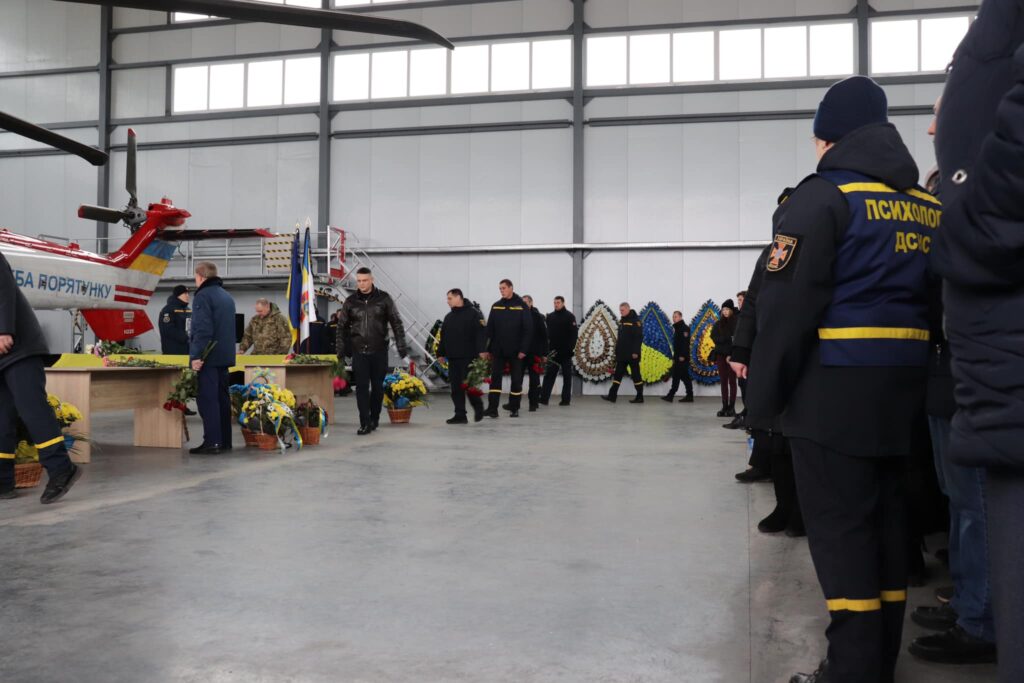 У Ніжині попрощалися з екіпажем, який загинув 18 січня в авіакатастрофі гвинтокрилу в Броварах. Йдеться про членів екіпажу Ніжинського спеціального авіаційного загону ДСНС — командира повітряного судна Олександра Василенка, пілота Костянтина Коваленка та бортового механіка Івана Касьянова. Церемонія відбулася на території спецзагону.