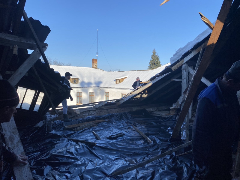 - У Підлісецькому ЗЗСО І-ІІ ступенів завалилася частина покрівлі, фото Мостиська міська рада