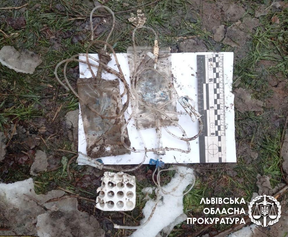 Окрім цього, вилучили використаний медичний матеріал, зокрема, системи для крапельниць, шприци, пробірки.