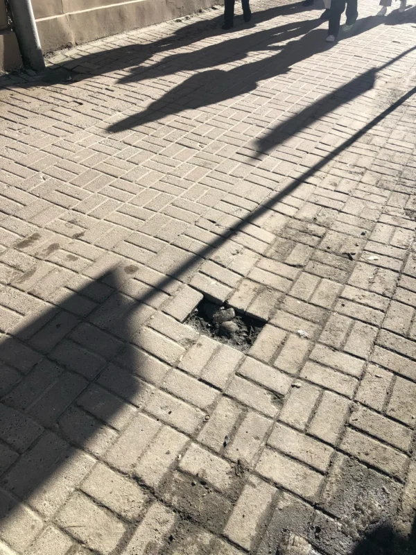 В двох місцях – відсутня тротуарна плитка, там ями. На одній з них я підвернув ногу, гепнувся на землю, роздер штани і якось дуже злий тепер”, – йдеться у повідомленні.