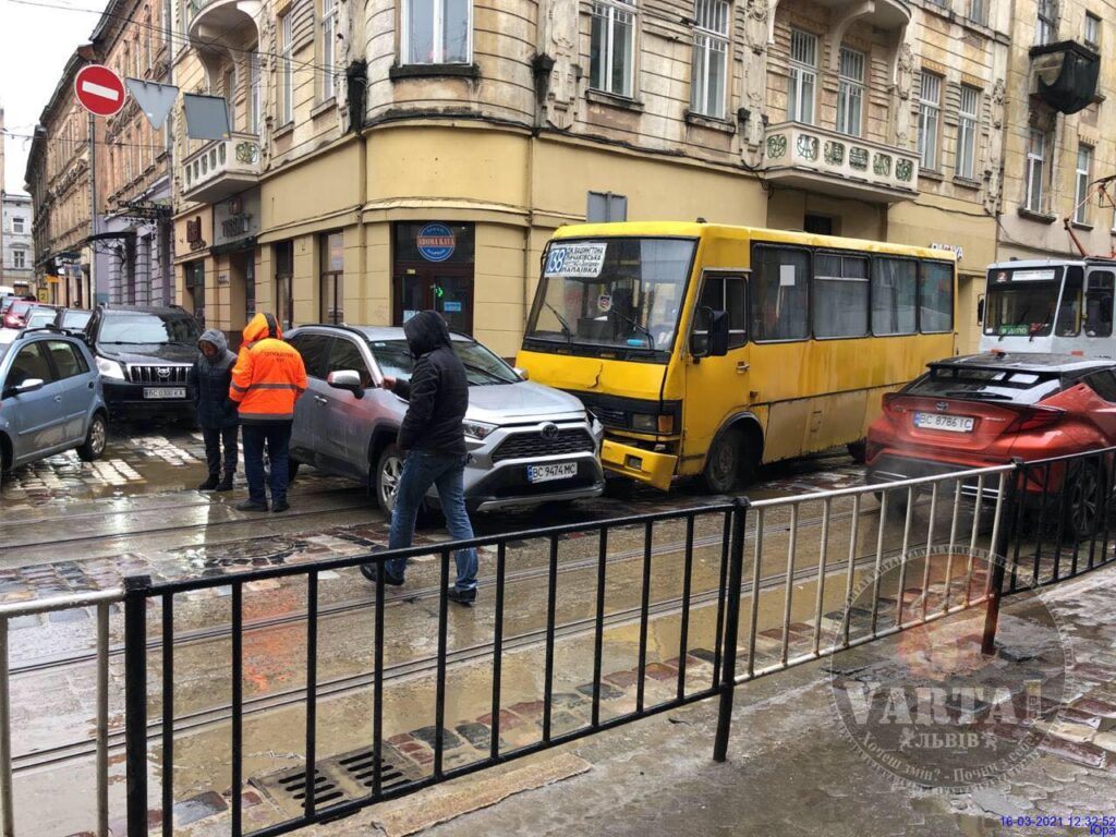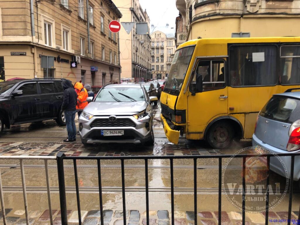 - У центрі Львова маршрутка не розминулась із автомобілем, фото Варта-1