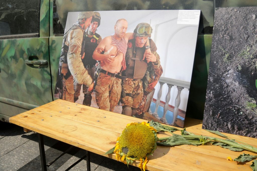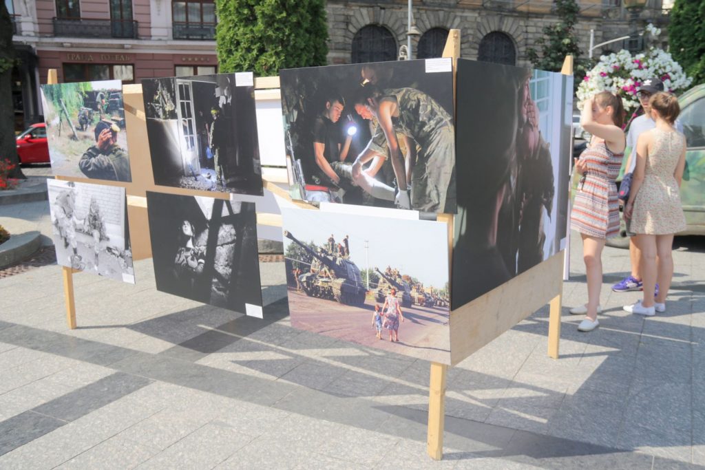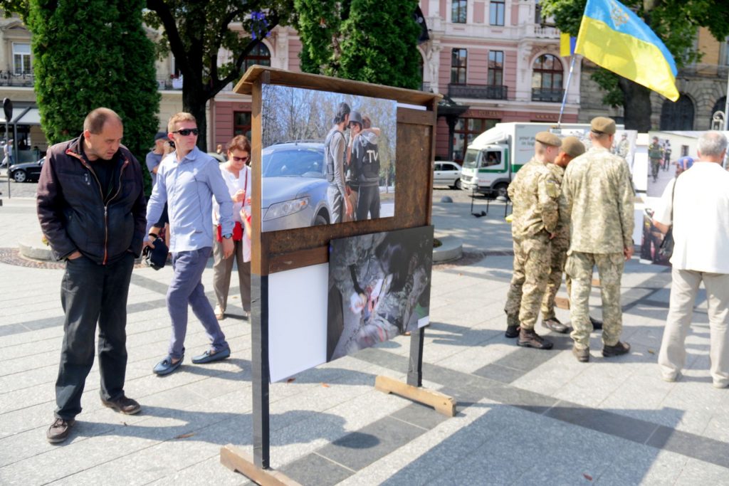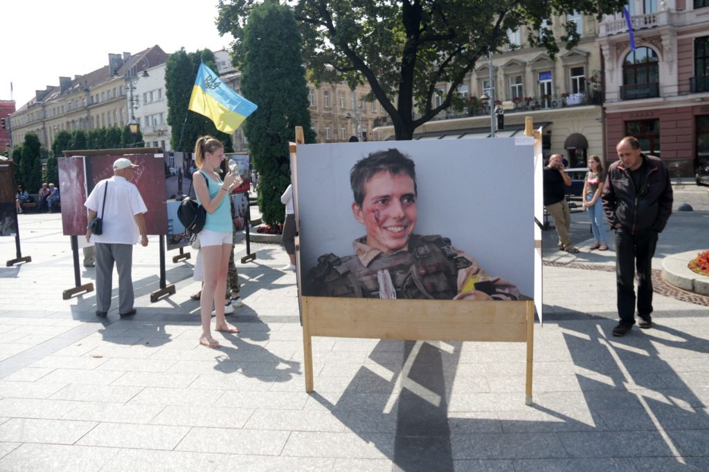 Сьогодні, 29 серпня, у Львові перед пам’ятником Тарасові Шевченку триває експозиція документальної фотовиставки чотирьох фотографів: Саші Глядєлова, Макса Дондюка, Макса Левіна та Маркіяна Лисейка, які були в місті Іловайськ.