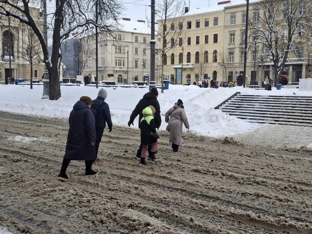 Позначки: Галицька РА, комунальники Садового, Львів, прибирання снігу, сніг