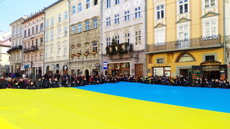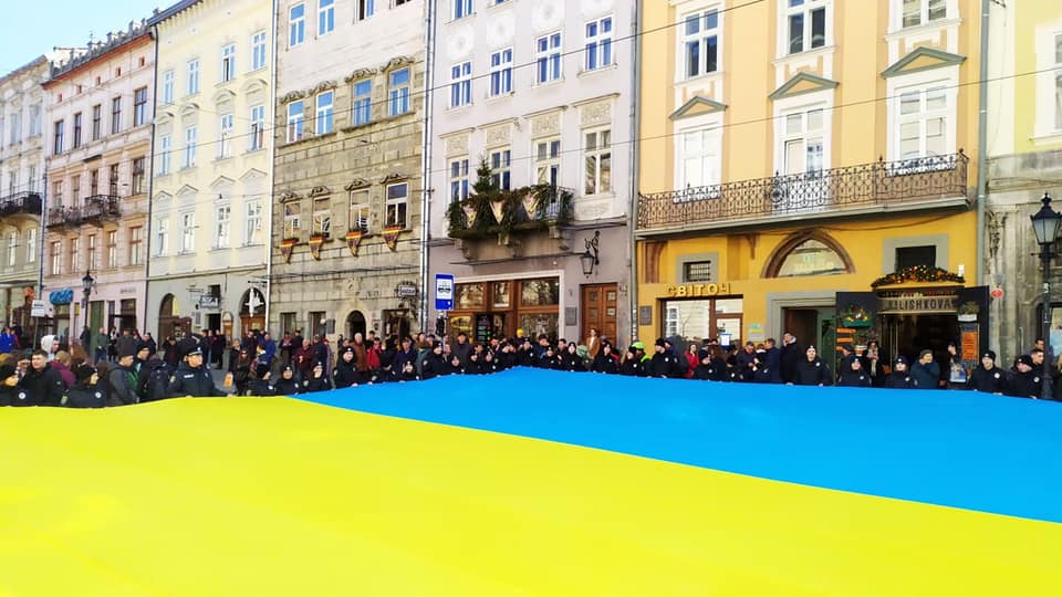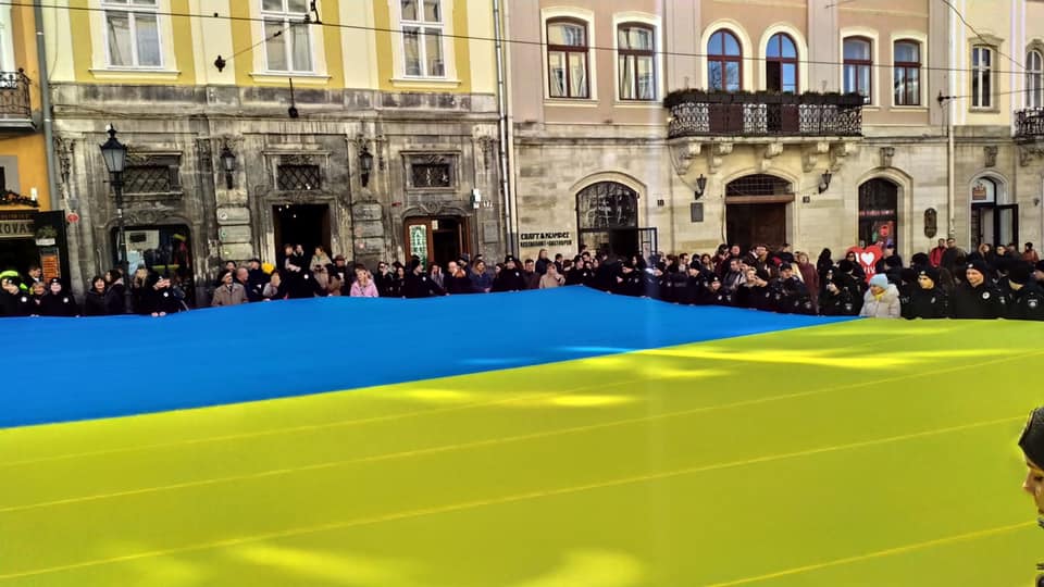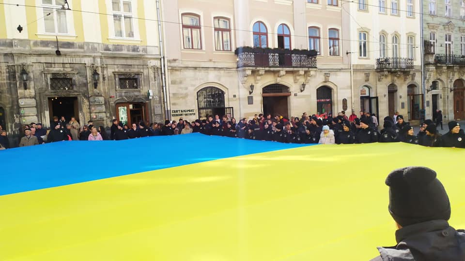 - У центрі Львова розгорнули прапор України, фото Зінкевич