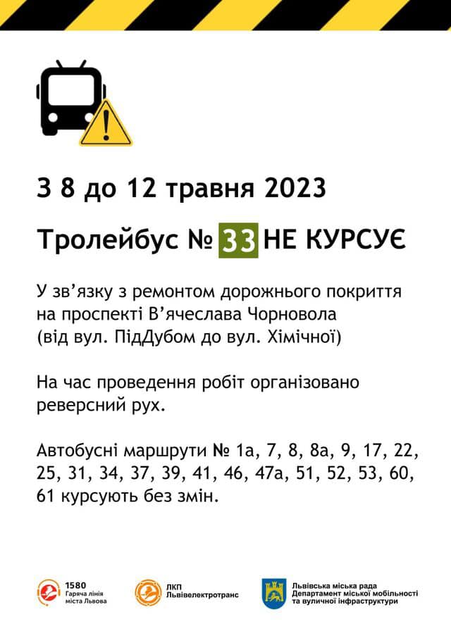 Також не курсуватимуть тролейбуси № 33.