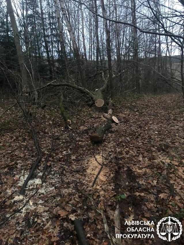 За процесуального керівництва Львівської обласної прокуратури повідомлено про підозру помічнику лісничого та майстру лісу одного з лісництв Самбірського району, а також підприємцеві та двом його підлеглим, які брали участь у злочинній схемі, за розтрату чужого майна за попередньою змовою групою осіб (ч.3 ст.191 КК України).