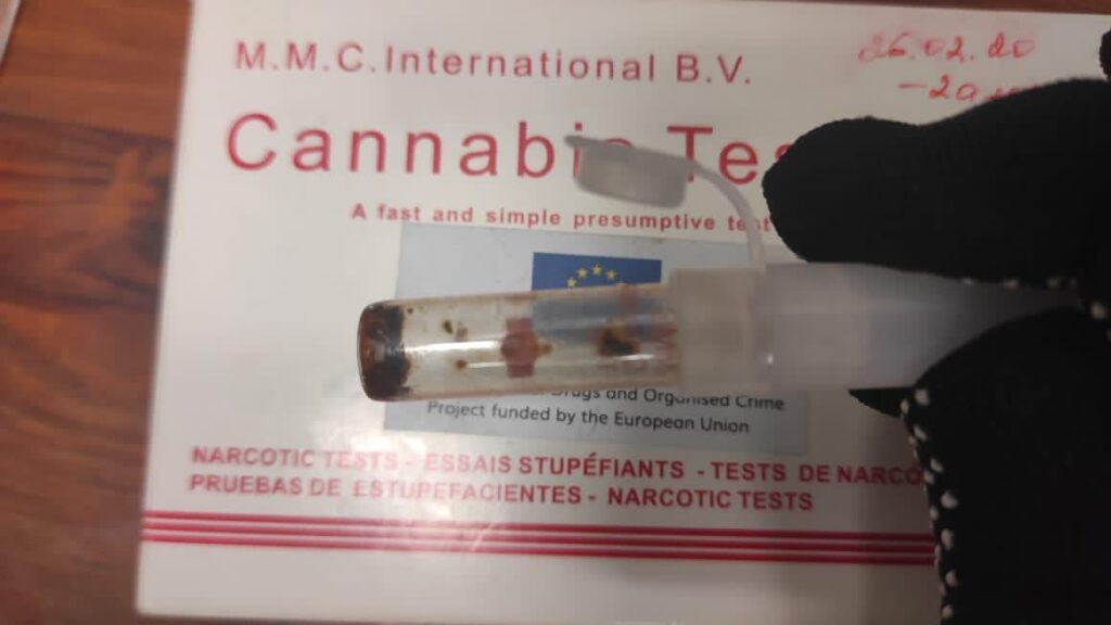 Два пакунки з «травичкою» допоміг виявити спільній прикордонно-митній оглядовій групі службовий собака охоронців кордону. В пакунках знаходилось майже 100 грамів рослинної речовини сіро-зеленого кольору. Проведений експрес-аналіз підтвердив, що знахідка містить наркотик.