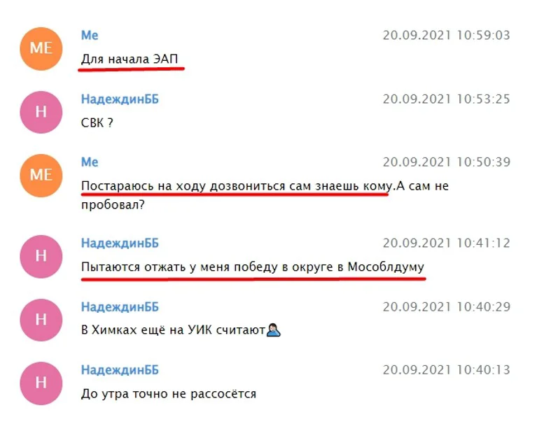 Зокрема, як видно на скриншотах листування, на виборах мера Москви 2022 року Надєждін схарактеризував свою політичну діяльність фразою «Стараюсь соблюсти тонкую грань допустимой оппозиционности».