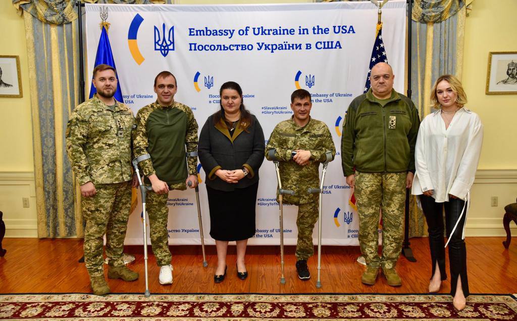 “Разом з Аташе з питань оборони Борисом Кременецьким та старшим помічником з оборони Олександром Рожковим раді були вітати у Посольстві України в США наших військовослужбовців Вадима Міщука та Сергія Лукер’єваса, які з середини листопада, завдяки невтомній команді United Help Ukraine, Future for Ukraine та лікарю-протезисту і великому другу України Майку Коркорану, пройшли лікування у Medical Center Orthotics & Prosthetics (MCOP) у м. Сілвер-Спрінг штату Меріленд. Продовжуємо постійну роботу з питань якнайшвидшої реабілітації захисників України та бажаємо нашим незламним воїнам якомога скорішого одужання та повернення до максимально можливого повноцінного життя”, — написала на своїй Facebook-сторінці Оксана Маркарова.