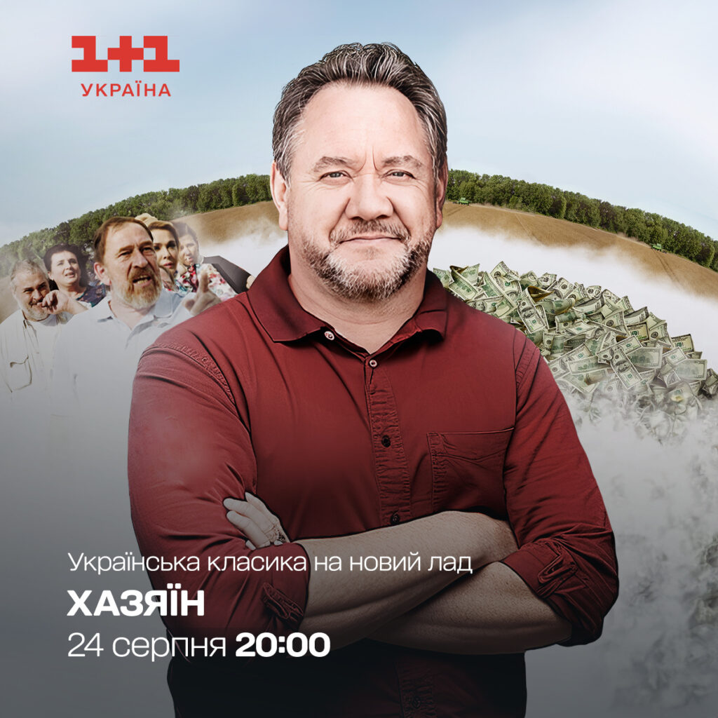 У День Незалежності, 24 серпня, о 20:00 на телеканалі “1+1 Україна” відбудеться премʼєра 4-серійного телефільму “Хазяїн” – легендарної української класики на сучасний лад. Стрічка створена за мотивами однойменної соціальної комедії класика української літератури Івана Карпенка-Карого та представляє особливий погляд на вічний конфлікт – взаємостосунки батьків і дітей. У проєкті осмислюється тема боротьби за справедливість, загальнолюдські та особистісні моральні цінності.