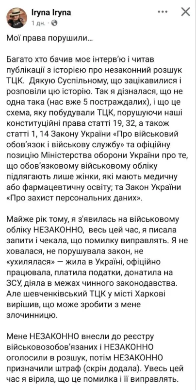 “Жінок почали незаконно ставити на військовий облік і призначати штрафи”, — повідомив журналіст Єгор Логінов.