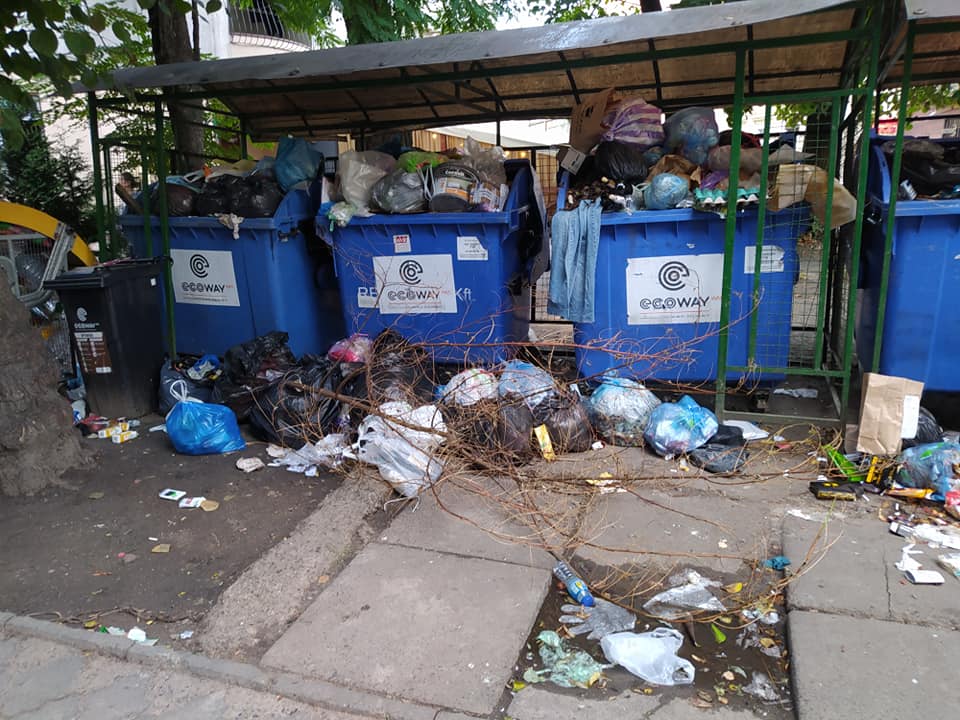У Львові на вулиці Київській, 20, на перехресті з вулицею Єфремова контейнери для збору змішаних відходів переповнені, відходи перебувають на пішохідній частині вулиці.