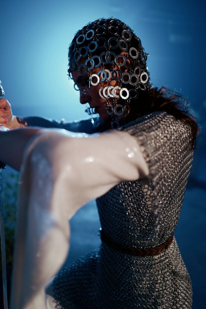 «Це не просто стилізація. Це алегорія сили через жіночність. Витончені історичні сукні та прикраси поєднані з масивними обладунками — такою ми бачимо сучасну жінку: ніжну й незламну водночас», — пояснює MAXIMILIAN.