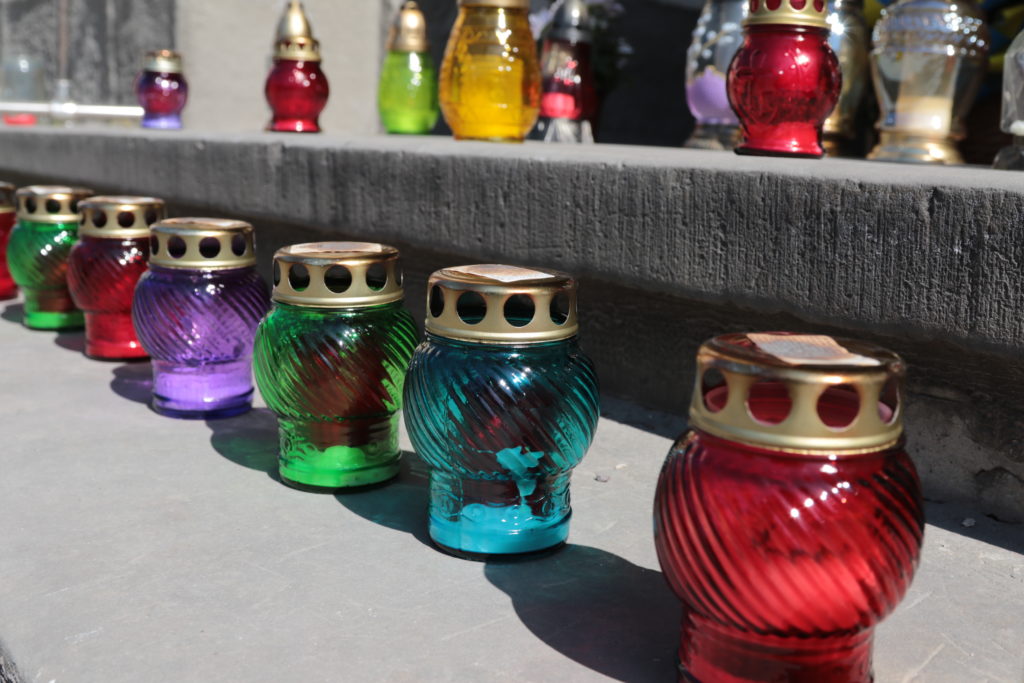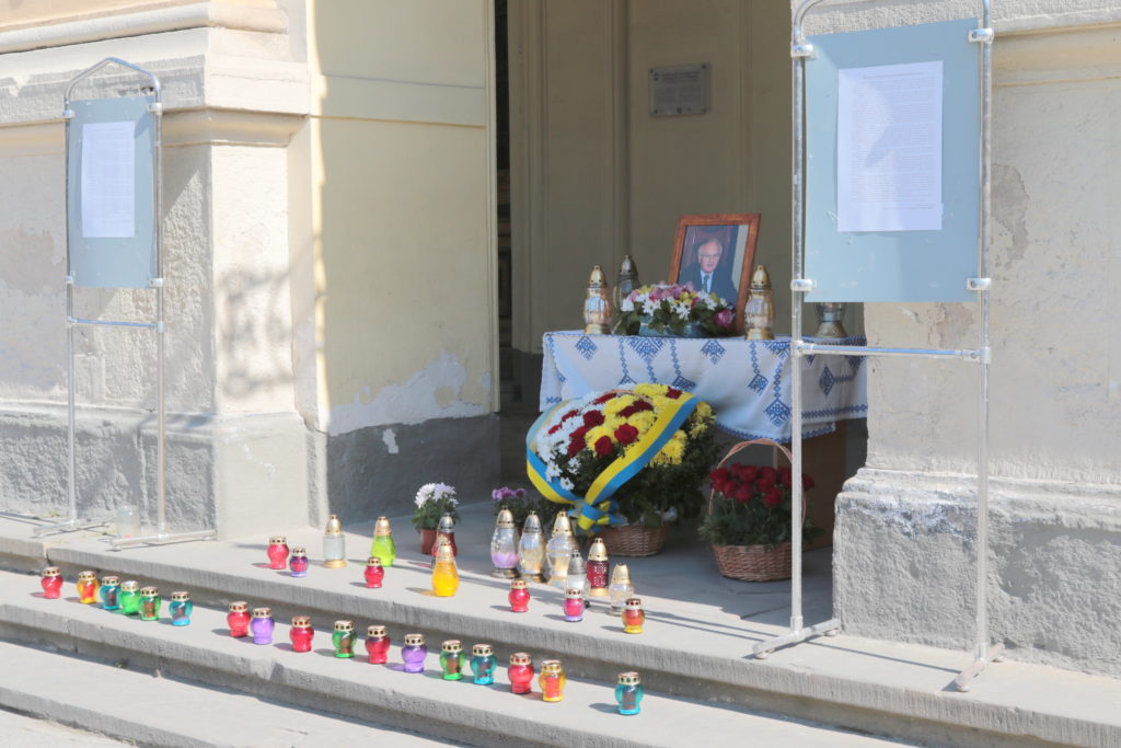 Попри те, через пандемію коронавірусу львів’яни не можуть прийти особисто попрощатись із померлим, до головного корпусу університету від вчора люди приносять квіти та запалюють лампадки.