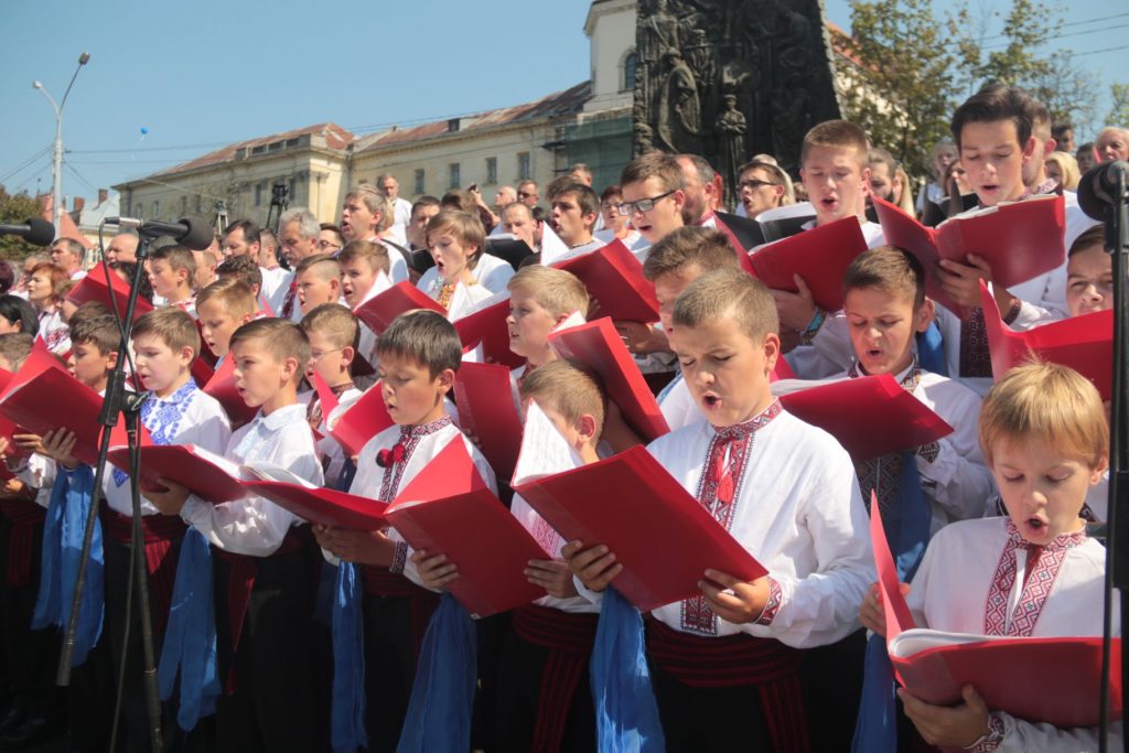 Хорові колективи спільно виконали символічну пісню – «Ой у лузі червона калина» – композицію, яку співали, коли вперше 27 років тому внесли до Верховної Ради України синьо-жовтий прапор. Опісля вперше в Україні відбулось наймасовіше виконання танцю “Галицький вітальний”, участь у якому взяли більше сотні танцювальних пар.