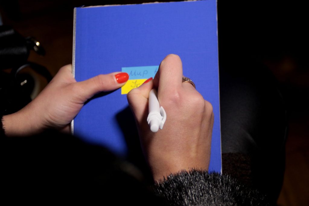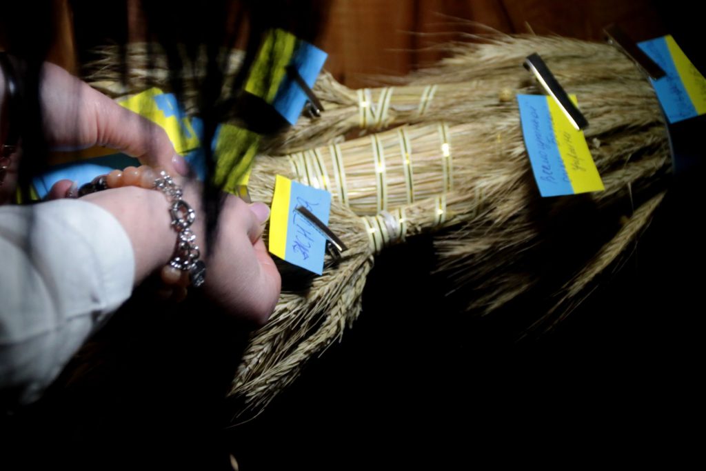 Також у програмі було спільне прикрашання синьо-жовтими стрічками з побажаннями дідуха-оберегу, який передадуть нашим захисникам на передову.