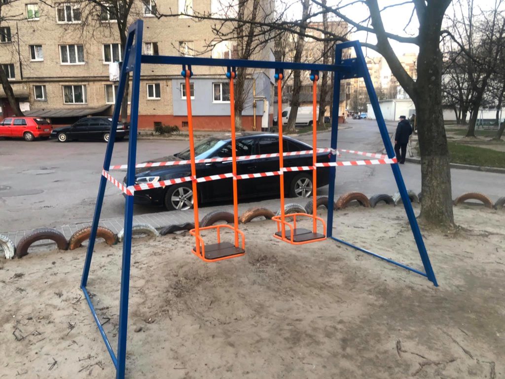 У Львові стрічками перев’язали качелі на дитячому майданчику.