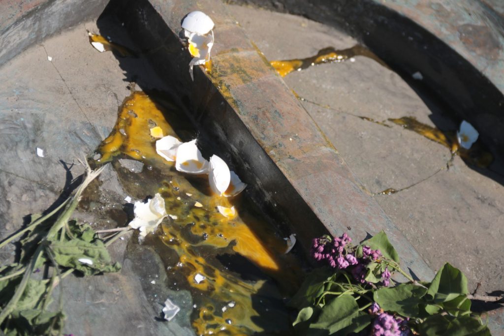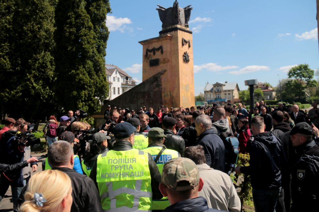Щоправда, не обійшлось без провокацій: юні представники націоналістичних організацій вранці обкидали яйцями радянську символіку.