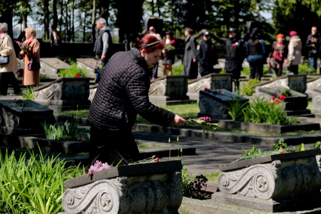 Так, у Львові на Марсовому полі та Пагорбі Слави пройшли меморіальні заходи у пам`ять про радянських воїнів, які віддали своє життя у Другій світовій війні.