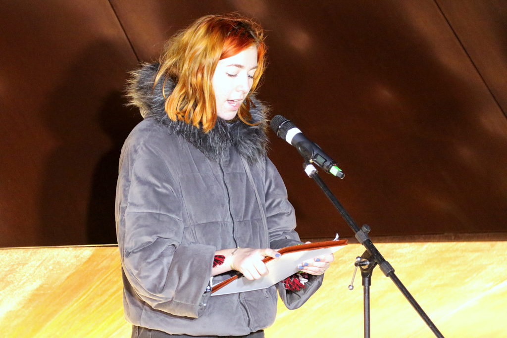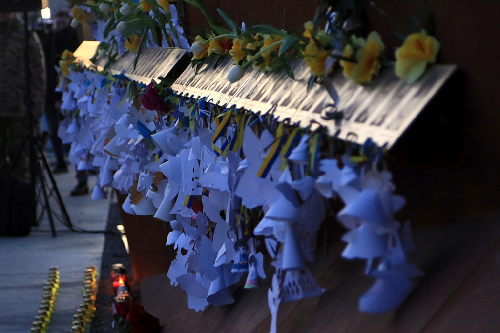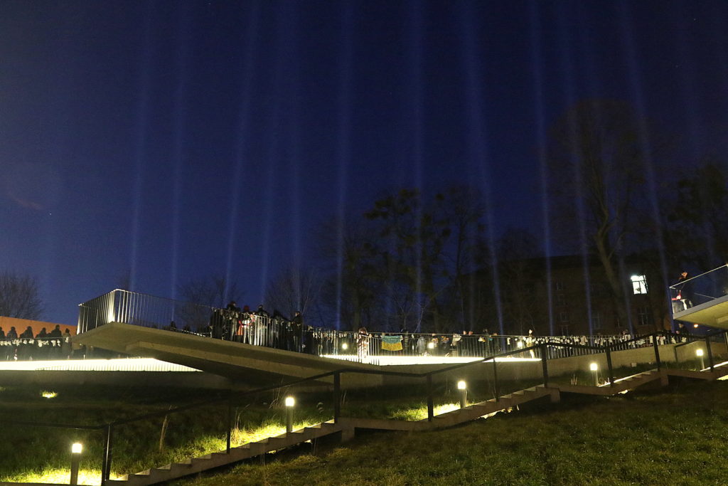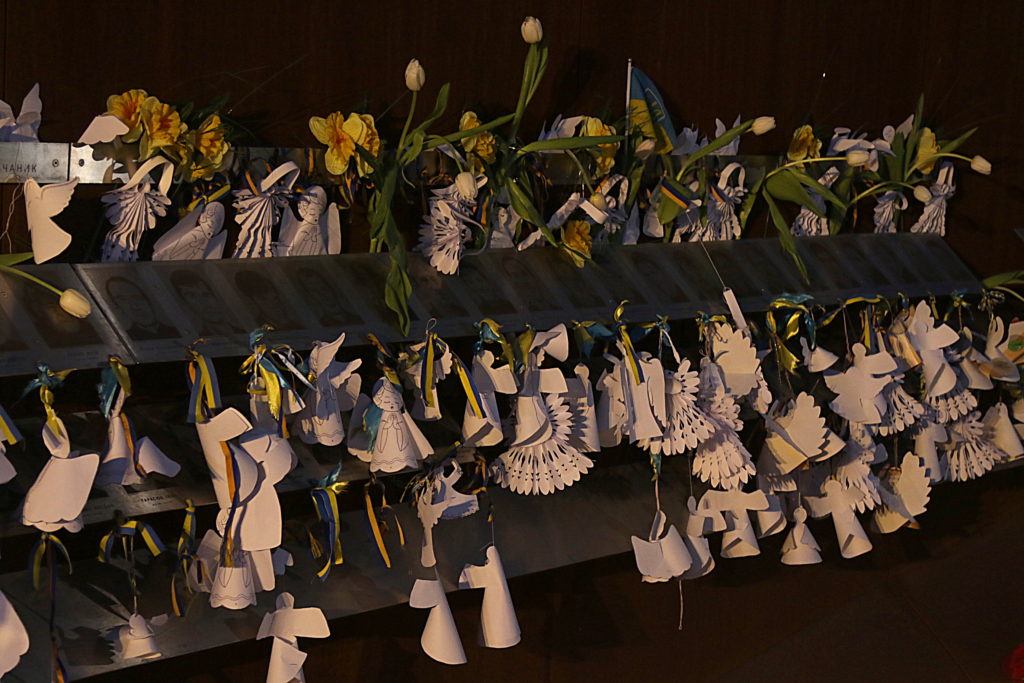 У межах заходу діти Героїв Небесної Сотні зачитали імена загиблих, після чого 20 променів позаду Стели загорілись у небо.