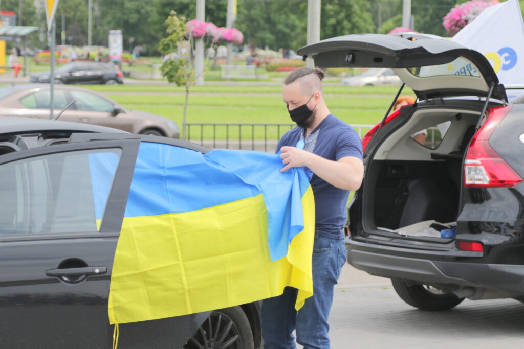 Окрім українських прапорів активісти також мали й кримськотатарські стяги, адже вчора, 26 червня, був День кримськотатарського прапора.