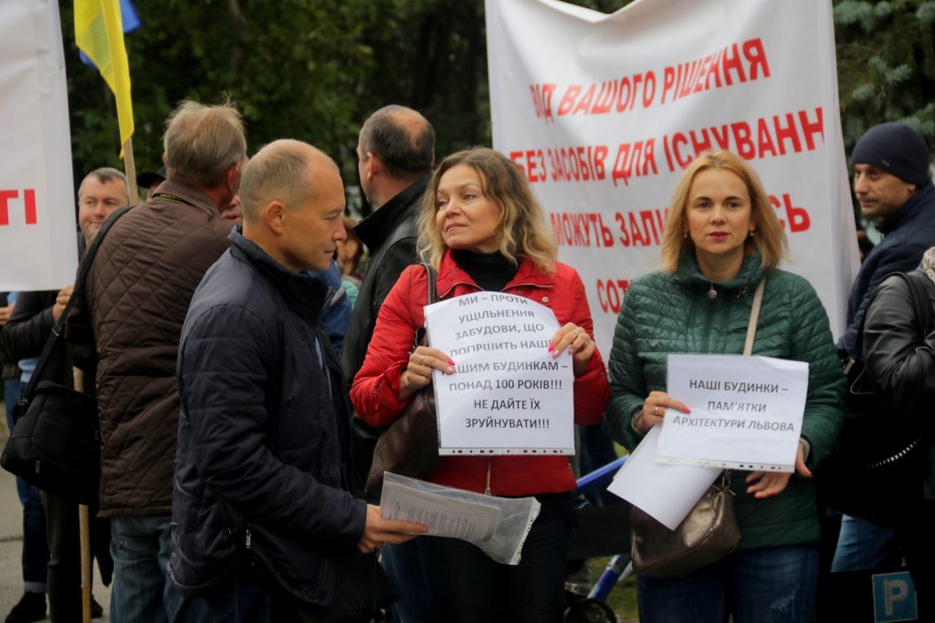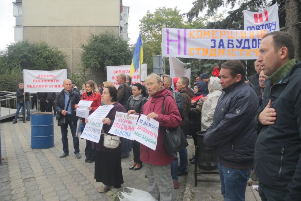 Організатори акції кажуть, що причина безладу у містозабудові Львова – у Львівській міськраді, бо саме там видають містобудівні умови та обмеження, які не враховують прав мешканців та факту приналежності історичної спадщини міста до меж зони ЮНЕСКО.