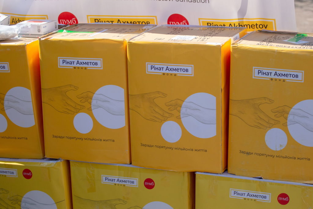Представники компанії ДТЕК та ПУМБ здійснили передачу вантажу в межах допомоги Благодійного Фонду Ріната Ахметова регіону у боротьбі з поширенням короновірусу.