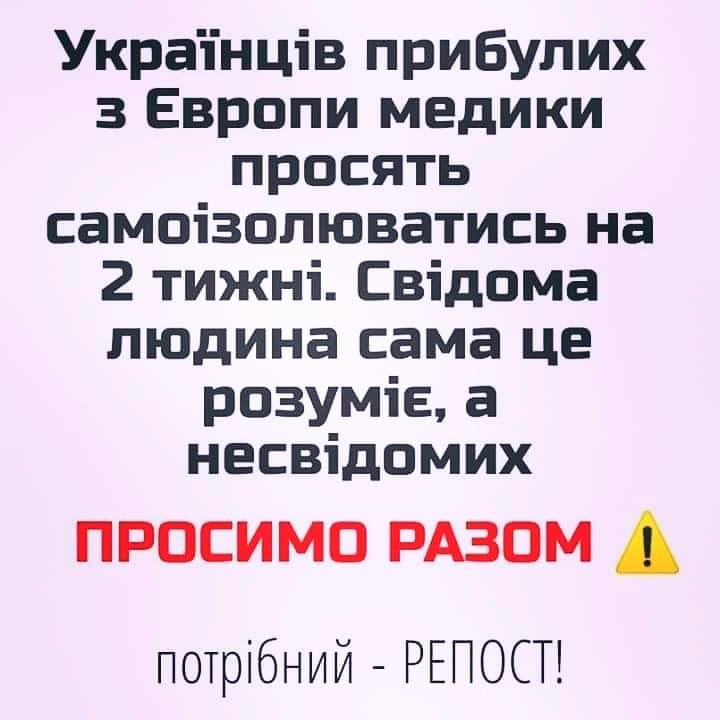 Водночас нещодавно Омбудсманка Людмила Денісова закликала українців не дискримінувати своїх співгромадян, які під час карантину повертаються додому з-за кордону.