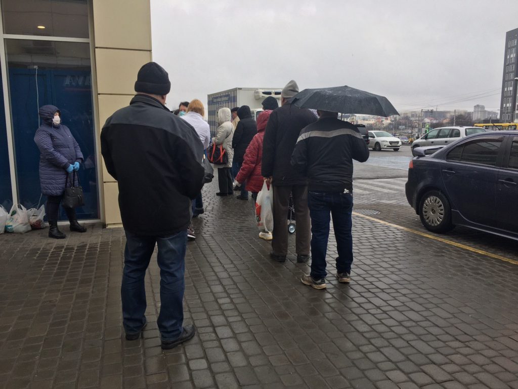 Ранок суботи, верхній ринок Шувар. В галереї з м’ясом та овочами пускають по 10 осіб, на дверях – грізний охоронець, на вулиці, під дощем і снігом, – черга із 50 осіб. Про відстань один від одного в два-три метри і не йдеться, люди туляться один до одного, думають, що так буде тепліше і швидше. Не секрет, що за таких умов можна, нехай і не коронавірус, але ГРВІ чи грип підхопити – точно.