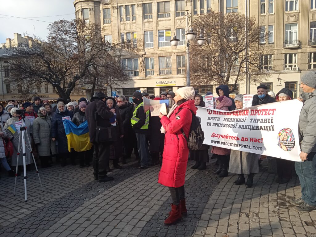 Кілька десятків активістів висловили своє небажанням вакцинуватись й назвали закон 4142 примусом й обмеженням свободи волі громадян.