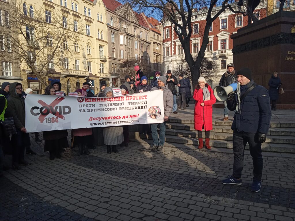 Сьогодні, 1 грудня, у Львові біля пам’ятника Данилу Галицькому відбувся пікет проти вакцинації, пише 4studio.