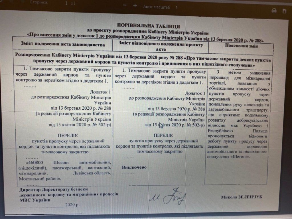 - Уряд відкрив пункт пропуску “Шегині”. Фото телеграм канал Олексія Гончаренка