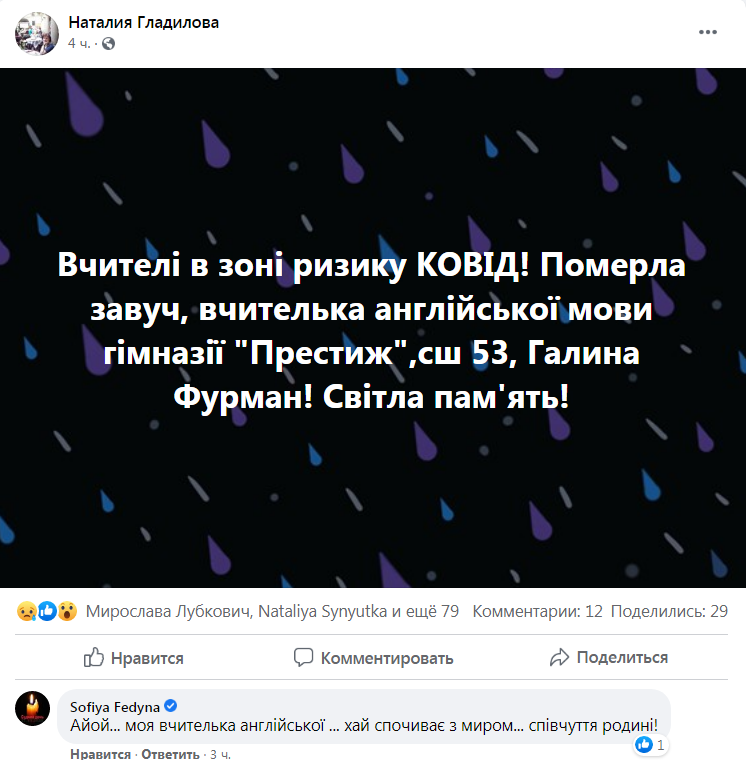 У Львові від коронавірусу померла заступниця директора гімназії «Престиж» Галина Фурман.