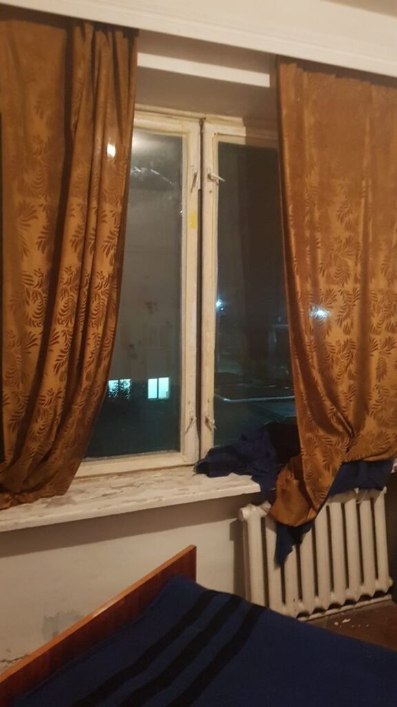 “У цьому приміщенні було дуже холодно, були протяги. Зараз я потроху облаштовуюсь тут… І принаймні, вже “заклеїв” вікно: їхніми ж ковдрами. Вікно це дуже старе. У туалеті немає світла. З місцевим лікарем, молодшим сержантом, ми спілкуємося по Вайберу. За фактом – я один раз йому написав”.