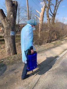 Фахівці забезпечені акумуляторними ранцевими оприскувачами, пересувними Дезінфекційними установками УД-320, а також достатньою кількістю дезінфікуючих засобів.