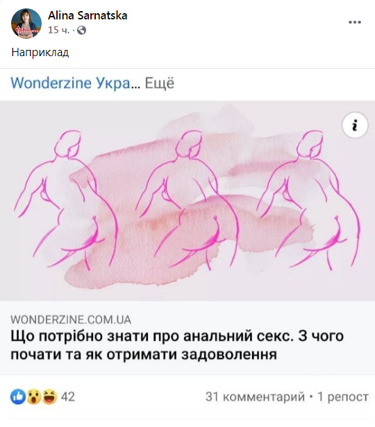- Скриншот ФБ/Alina Sarnatska