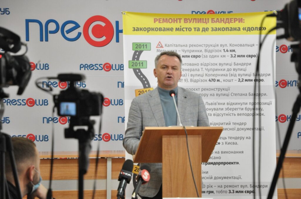 «У 2011 році в рамках співпраці міста з ЄБРР реконструювали вул. Коновальця – Мельника –Чупринки, які є суміжними з вулицею Бандери. Було виконано весь комплекс робіт, разом із заміною інженерних комунікацій, заміною трамвайних шляхів, дорожнього покриття, ремонтом тротуарів. Відремонтовано відрізок 1400 метрів, вартість робіт склала 4.5 мільйона євро, отже за один кілометр – 3.2 мільйона євро (за тодішнім курсом)» – пригадав народний депутат.
