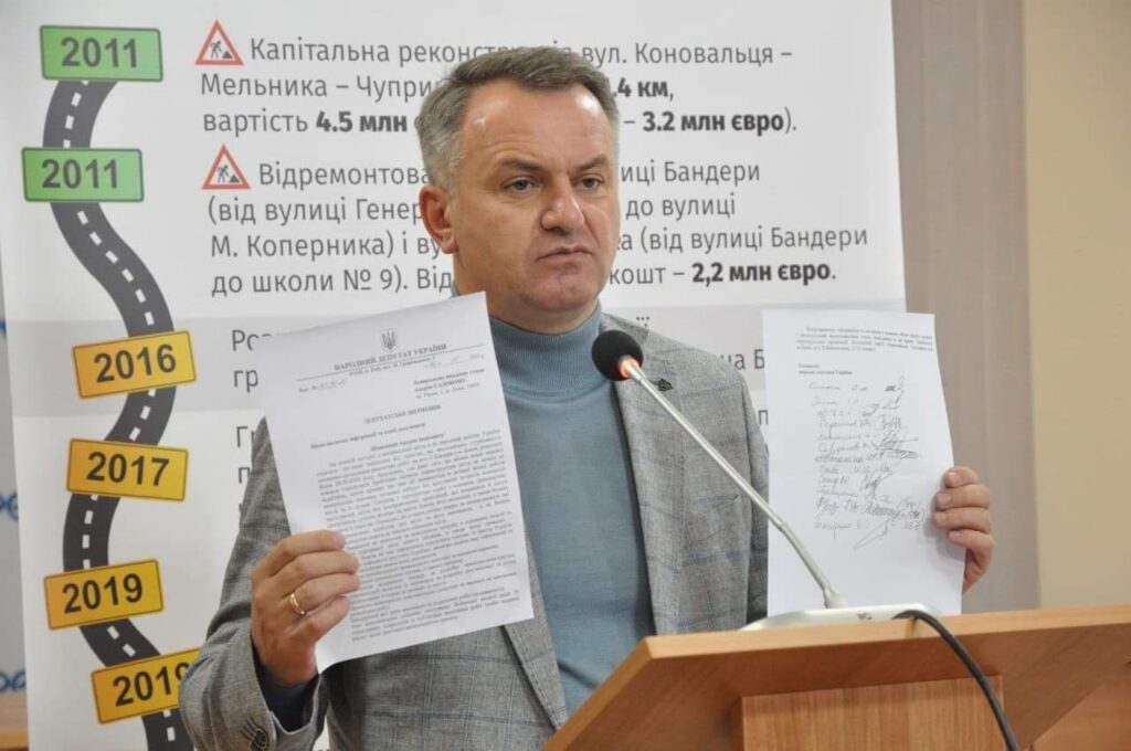 «У бюджеті міста на 2020 рік на ремонт вулиці Бандери передбачено 112 мільйонів гривень, тобто 3.3 мільйона євро (за курсом на кінець минулого року). На цій основі, 26 грудня 2019 року, мер Садовий заявив, що міська влада планує ремонт вулиці Бандери – «орієнтовно у квітні і завершити їх до кінця вересня». Але міська влада два рази збрехала: перший про терміни і другий про вартість ремонтних робіт. У початковий договір на розробку проектно-кошторисної документації чотири рази вносилися зміни», – сказав народний депутат.