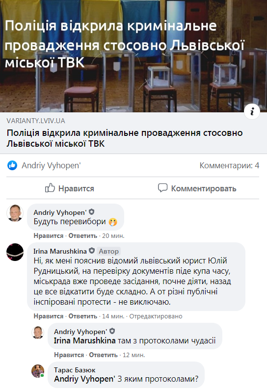 - Скриншот ФБ/Львівська політика