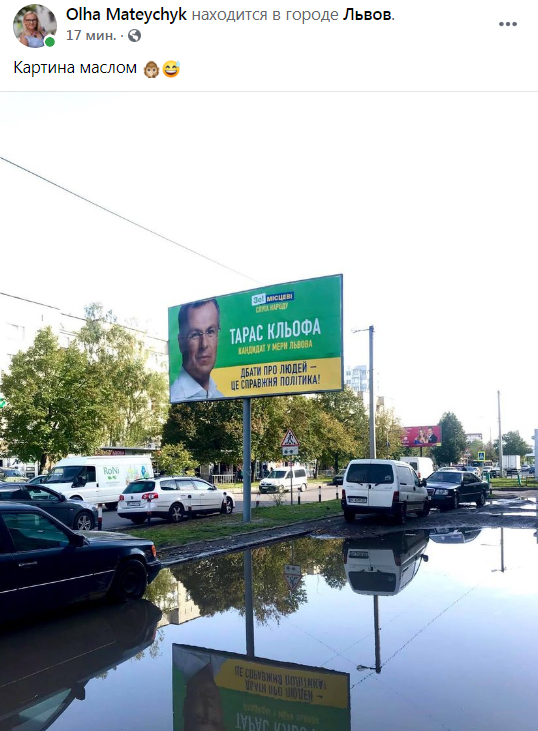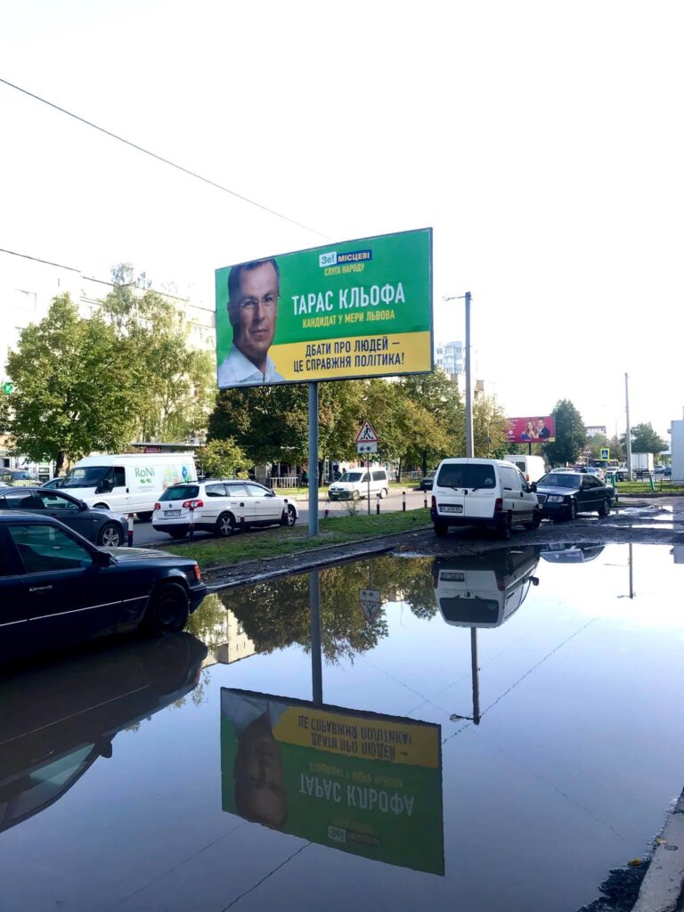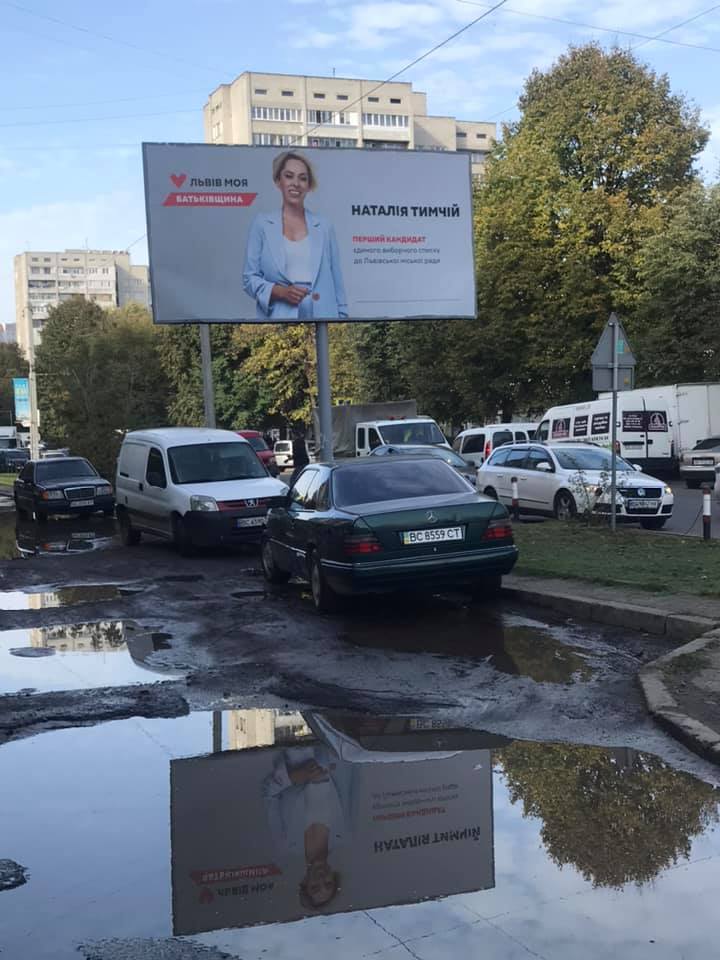 У Львові політичні сили розміщують рекламу із закликами до покращення якості життя у місті… на фоні розбитих доріг та ям.