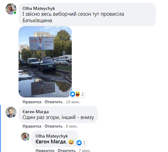Як пише “Четверта студія”, світлини такої політичної реклами “господарників” і претендентів на мерське і депутатські місця оприлюднюють користувачі соцмереж.