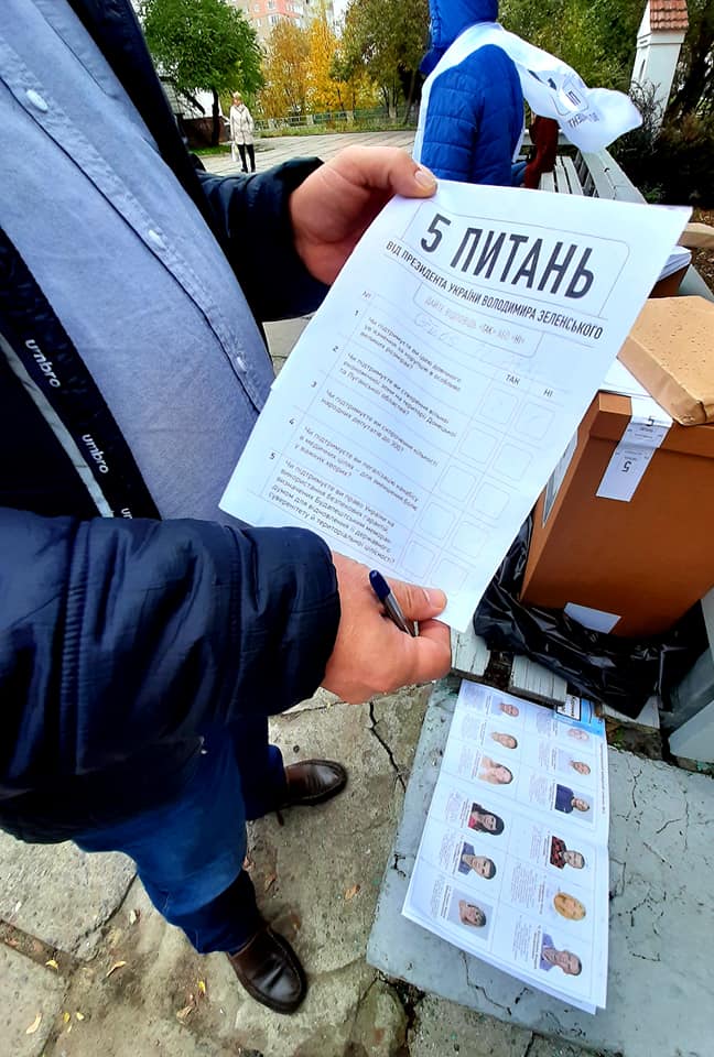 «Під виборчою дільницею у Львові, стояв молодий чоловік і роздавав листки де було 5 питань.  Дав також і мені, але я як громадянин Польщі, проживаючий у Львові, не знав як його точно заповнювати, тому написав на листку польською мовою “Голос поляка” (Głos Polaka) і поставив знак запитання»,- написав на своїй сторінці у ФБ Томаш Барт, який оприлюднив світлини з місця події.