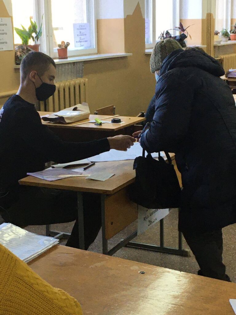 - Ідентифікація виборців відбувається належним чином. Водночас були зафіксовані спроби виборців проголосувати на основі фотографії паспорта (дільниця № 461857, Галицький район). Або ж фіксувалися випадки, коли виборець називав адресу та показував закритий паспорт, на основі чого отримував бюлетень (дільниця № 462145, Шевченківський район).