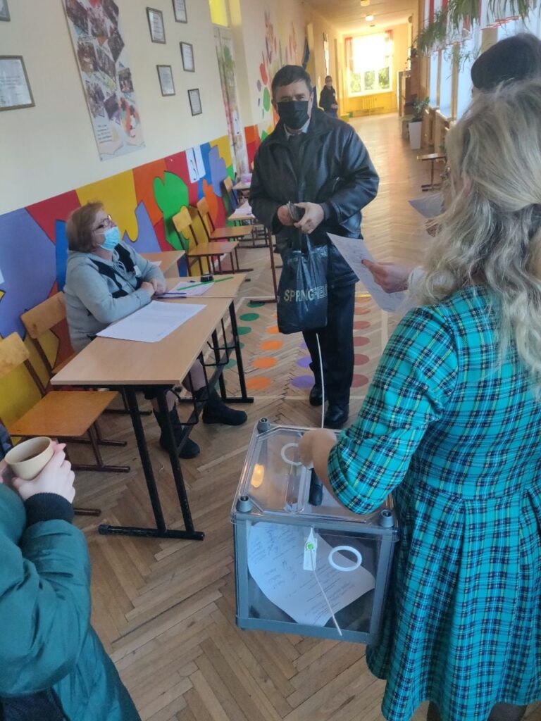 - Здійснення виборцями акту волевиявлення відбувалося згідно норм законодавства. Однак на дільниці № 462143 (Шевченківський район), отримавши бюлетені, літній чоловік і його дочка почали голосувати поза кабінкою. Після зауваження з боку спостерігача КВУ члени виборчої комісії попросили виборців проголосувати в кабінці. Однак вони не відреагували, почали вживати нецензурну лексику. В результаті жінка голосувала на руці, чоловік на столі членів ДВК. На дільниці № 462058 (Франківський район) виборець теж голосував на руках, на прохання зайти в кабінку не звернув увагу. Також зафіксовано поодинокі спроби голосування в кабінці одночасно 2 людей.