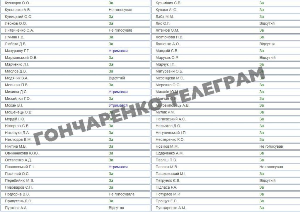 Про це свідчать результати голосування на сайті ВРУ, пише Четверта студія з посиланням на Леополіс.